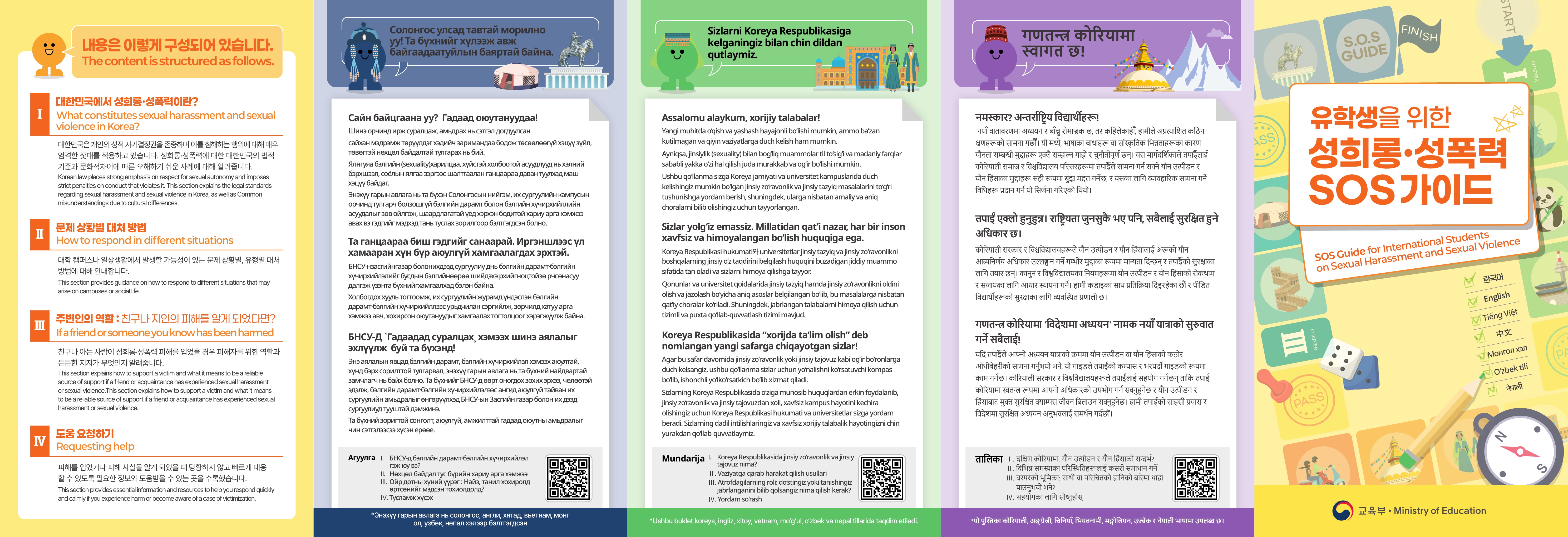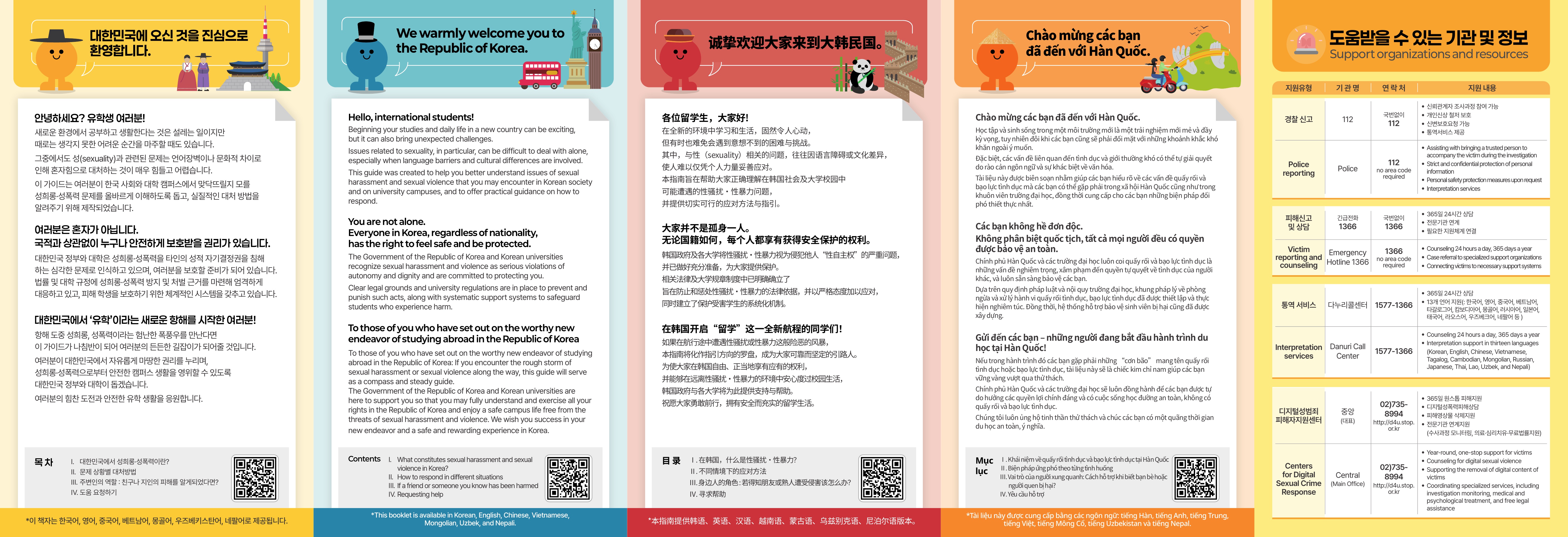 외국인 유학생을 위한 「성희롱·성폭력 SOS 가이드」(7개 국어) (한국어, 영어, 중국어, 베트남어, 몽골어, 우즈베키스탄어, 네팔어)